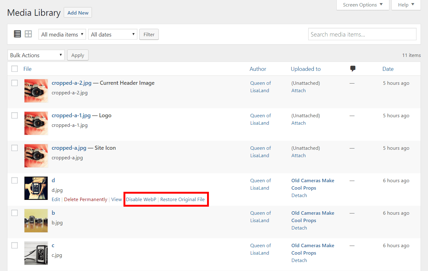 If you have enabled WebP images globally, you can disable it for individual images using the Disable WebP link.