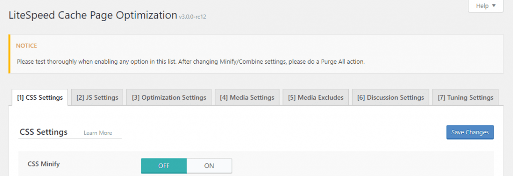 The old Optimize and Tuning settings tabs have been reorganized into a new Page Optimization section with multiple tabs that break settings down logically by type of optimization (CSS, JS, Media, etc.).