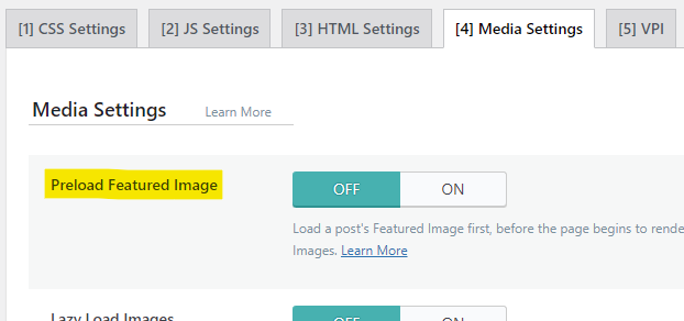 - The Preload Featured Image setting in Page Optimization > Media