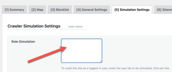 Then, from the WordPress Dashboard, navigate to LiteSpeed Cache > Crawler > Simulation Settings and make sure the Role Simulation box is empty.